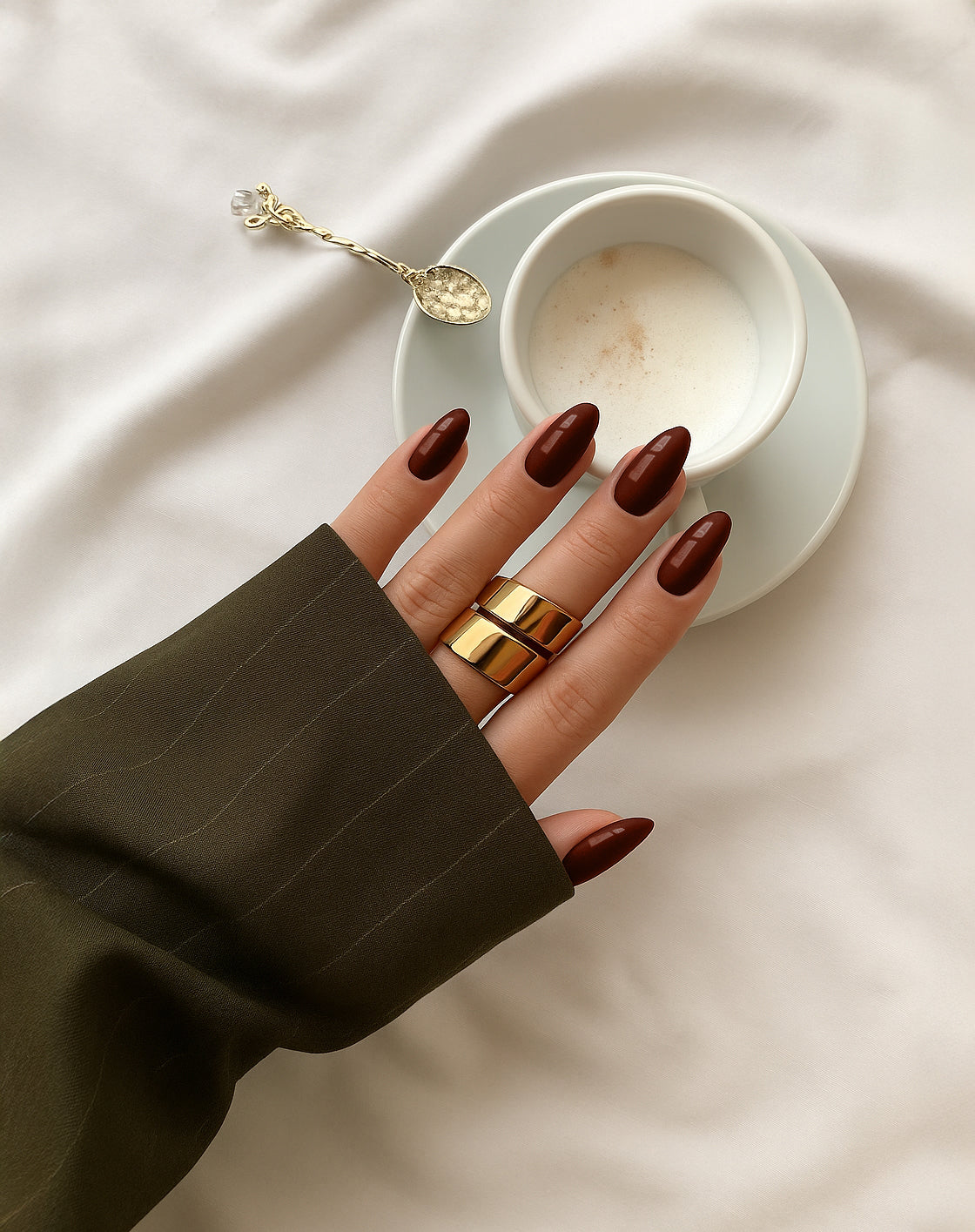 ✦ Cinnamon |  Un marrone intenso e avvolgente, perfetto per chi ama la sobrietà elegante. Un colore che si abbina facilmente a qualsiasi outfit, donando raffinatezza senza tempo.