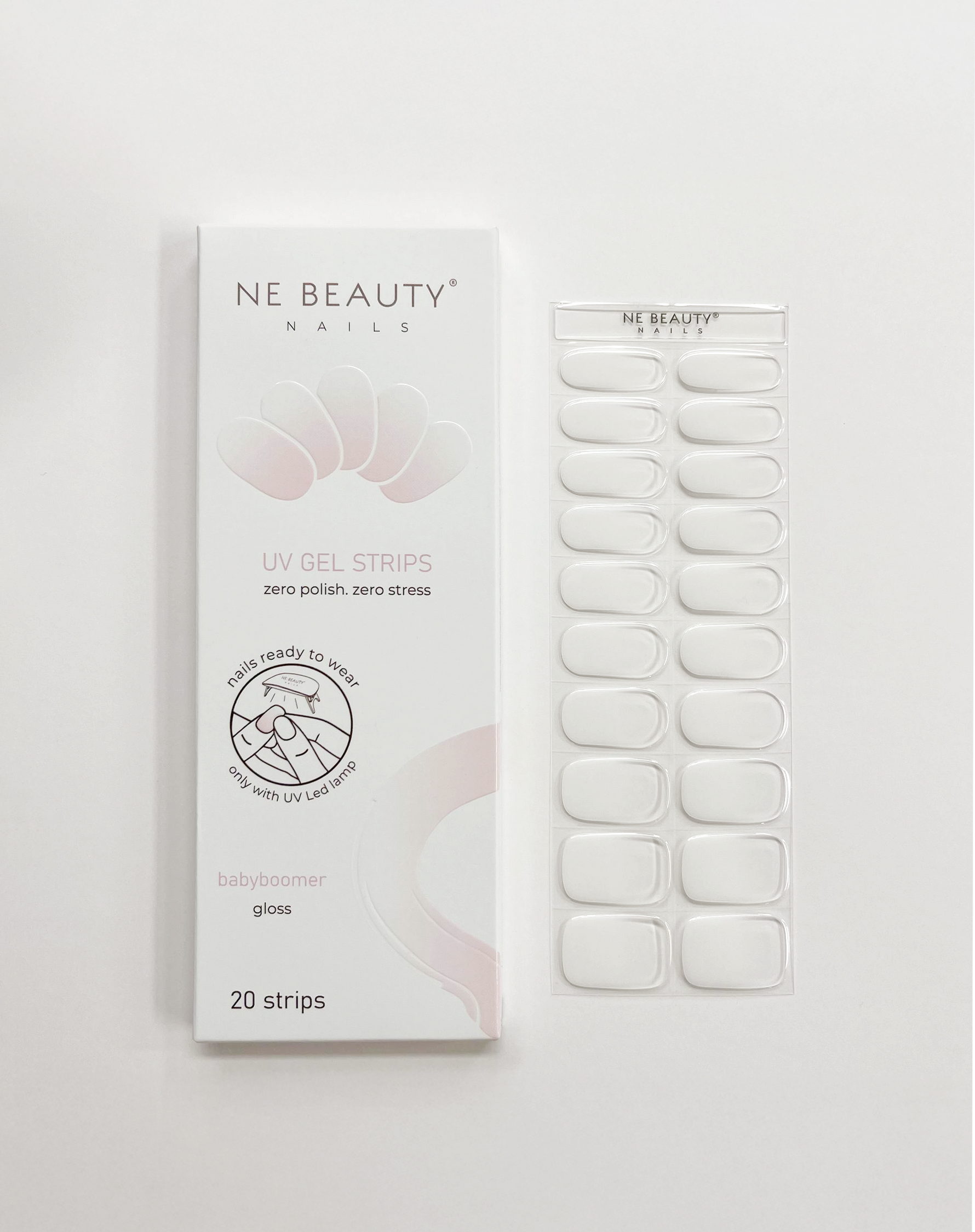 Le Babyboomer UV Gel Strips sono strisce adesive in gel UV di alta qualità, pensate per offrirti una manicure impeccabile dal finish ultra lucido direttamente da casa. Questo babyboomer sfuma delicatamente dal rosa naturale a un bianco lattiginoso, creando un effetto morbido, armonioso e incredibilmente raffinato.