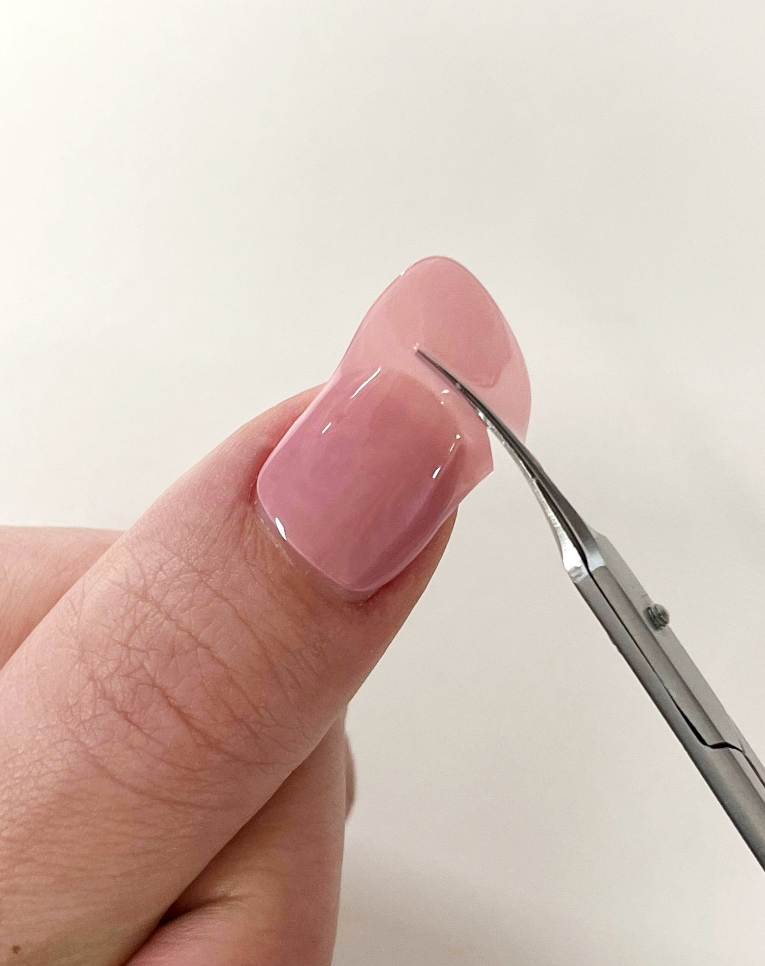 Taglia la parte eccedente della strip a livello della punta. Premi bene per far aderire.