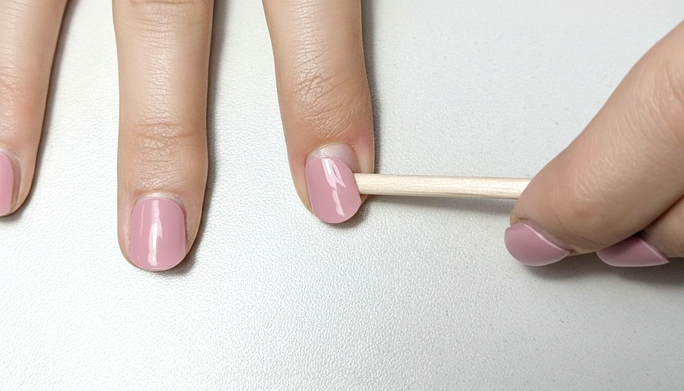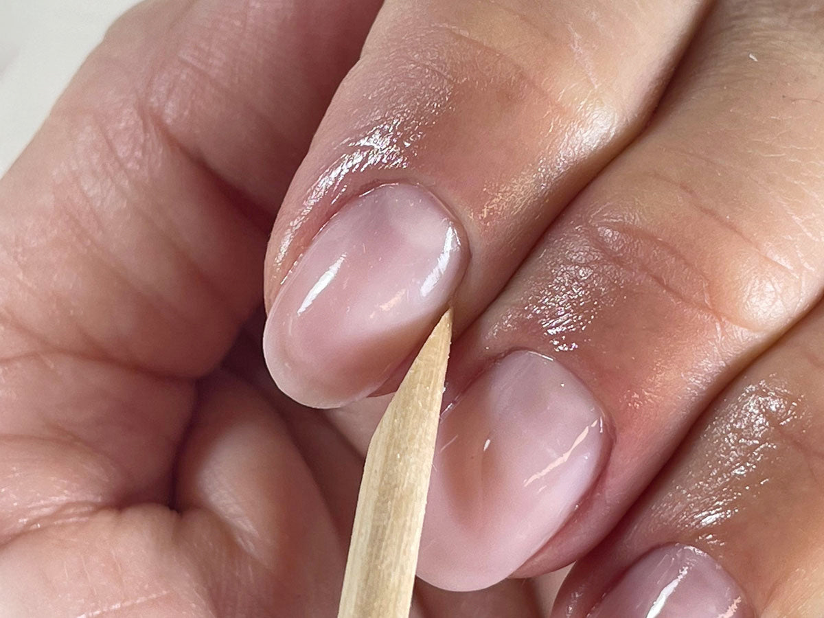 Usa il bastoncino in dotazione nelle strips per spingere delicatamente le cuticole verso il basso. Fai con delicatezza per non danneggiare la lamina ungueale.